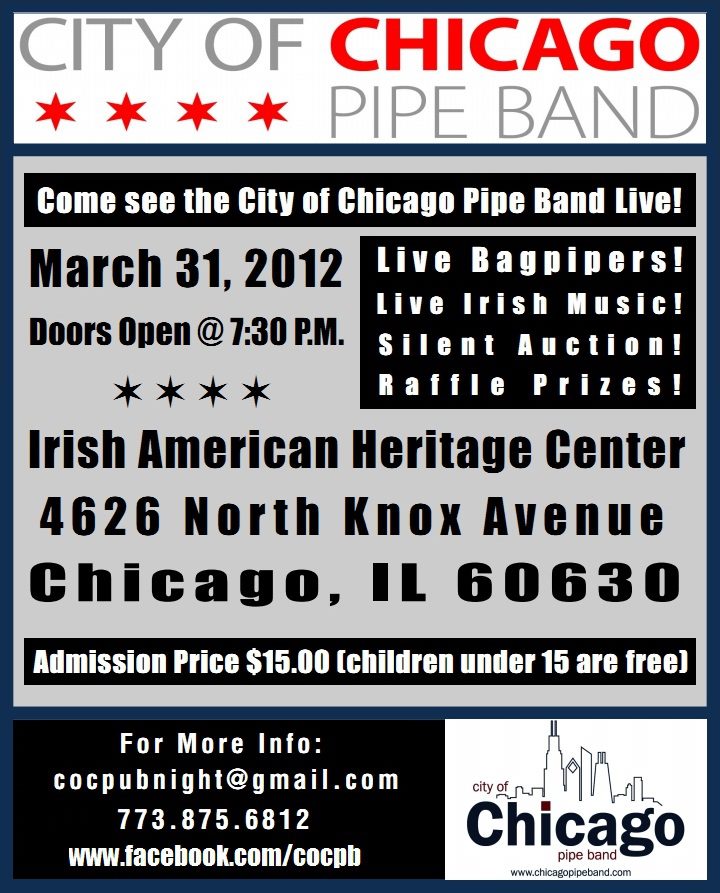 It’s back! The annual Pub Night featuring the City of Chicago Pipe Band. With live performances from the Grade 1 and Grade 4 bands, plus the students in the Chicago Academy of Piping and Drumming.